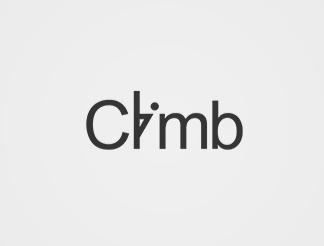 3、這款logo就是簡單的英文Climb(攀爬)構(gòu)成,很有新意的是設(shè)計者將字母“i”擬化成人形,而字母“L”像一張?zhí)葑?,結(jié)合起來正好詮釋了攀爬的意思,很有巧思。