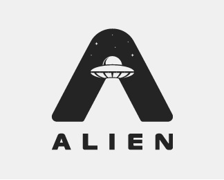 4、圖形描述的是星空下的外星飛船放出的光線,光線的白與夜空的黑形成鮮明對比,圖形恰恰就是ALIEN首字母A,結(jié)合留白的手法繪出了alien的涵義,給人無窮的想象力。