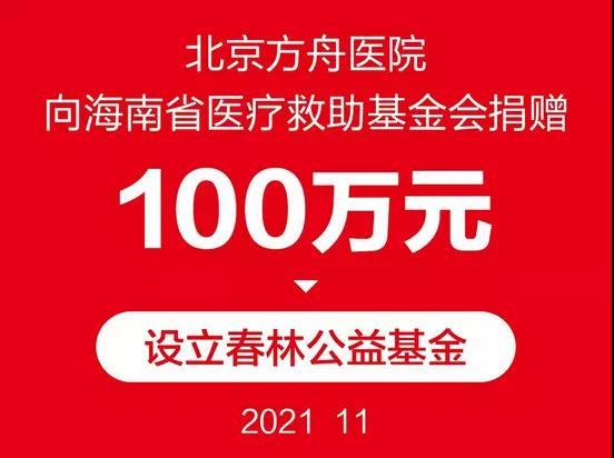 近日北京方舟醫(yī)院捐款100萬元,