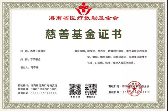 海南省醫(yī)療救助基金會常務(wù)副理事長兼秘書長范廉君介紹說:海南省醫(yī)療救助基金會是全國唯一一家衛(wèi)健委直屬省級醫(yī)療救助基金會,以醫(yī)療救助為主兼顧其他慈善項目的公募機構(gòu)。成立13年以來,幫助無數(shù)貧困患者走出困境,和眾多醫(yī)院都有合作慈善救助項目。這次春林公益基金的設(shè)立填補了在中醫(yī)慈善項目方面的空白。