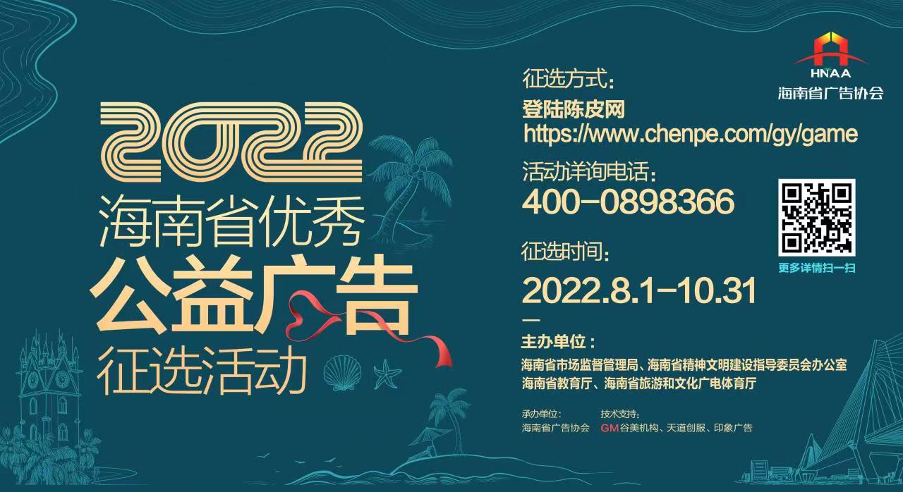 由海南省市場(chǎng)監(jiān)管局、省文明辦、省教育廳、省旅文廳四部門(mén)聯(lián)合主辦,海南省廣告協(xié)會(huì)承辦,海南印象設(shè)計(jì)協(xié)辦的“2022年海南省優(yōu)秀公益廣告作品”征集推選活動(dòng)火熱進(jìn)行中。