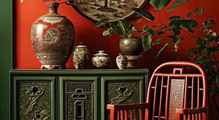 中國(guó)紅搭配復(fù)古綠