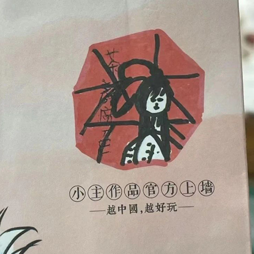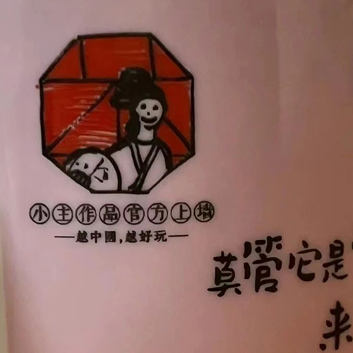 在一些產(chǎn)品包裝上把手持團(tuán)扇的古典佳人形象換成了仿佛小朋友對 logo 二創(chuàng)的插畫作品。